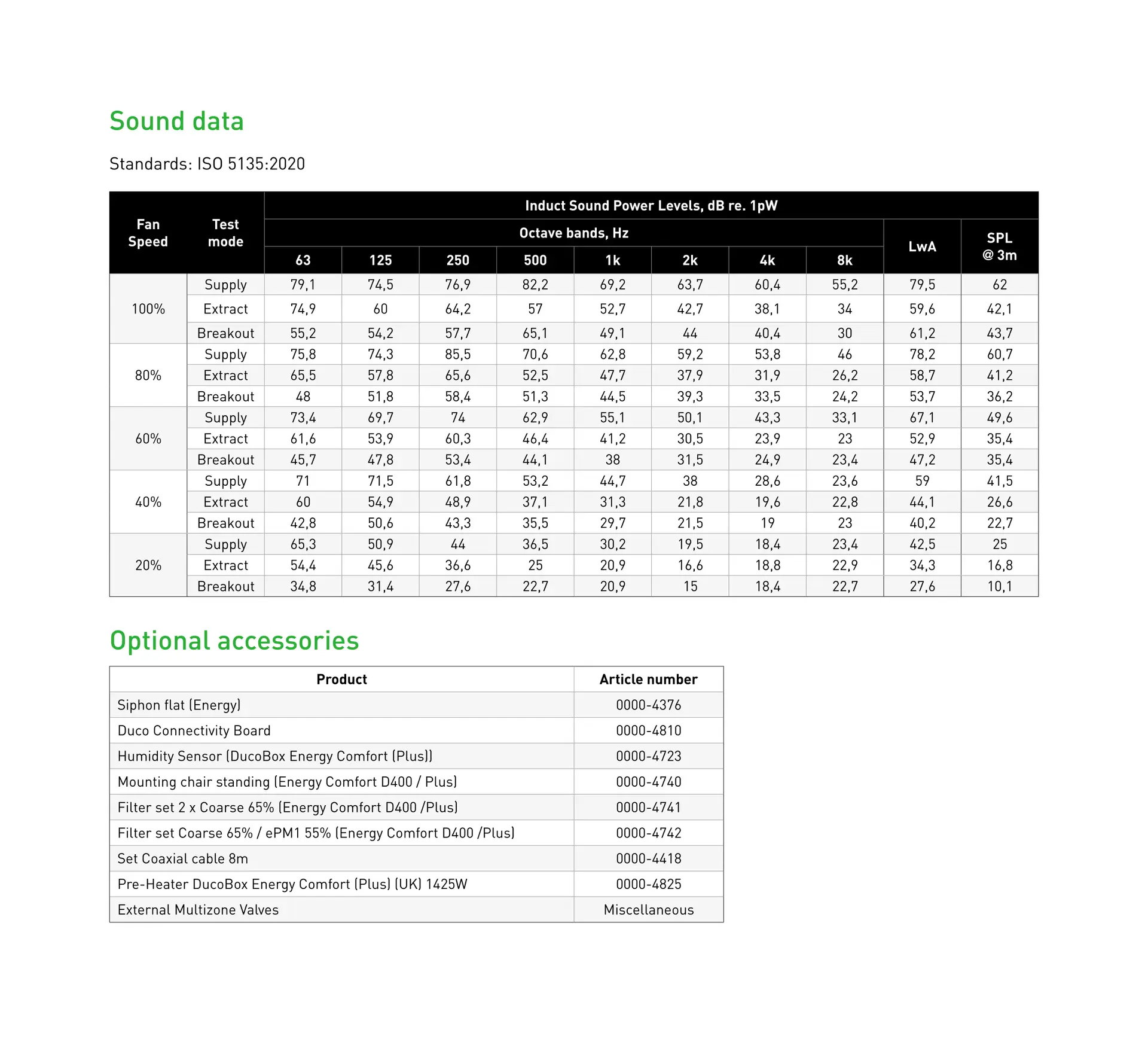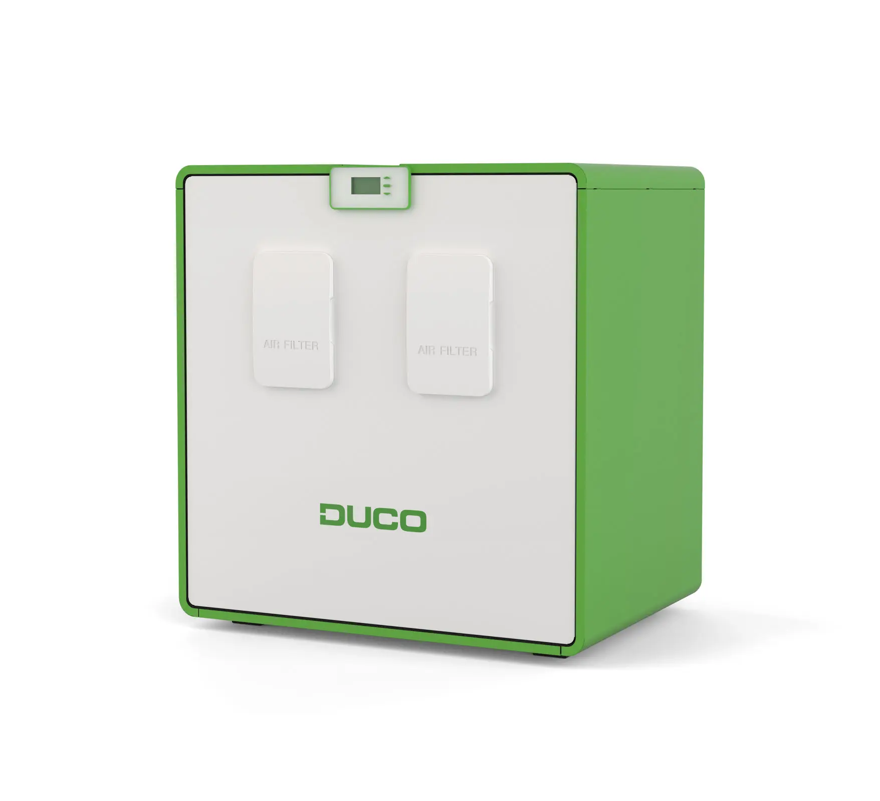 The use of dynamic air filters guarantee a very high efficiency rate. In combination with the possibility to include intelligent on-demand-controlling of the DucoBox Energy Comfort (based on CO2- and/or humidity-sensors), this results in a very energy efficient performance.