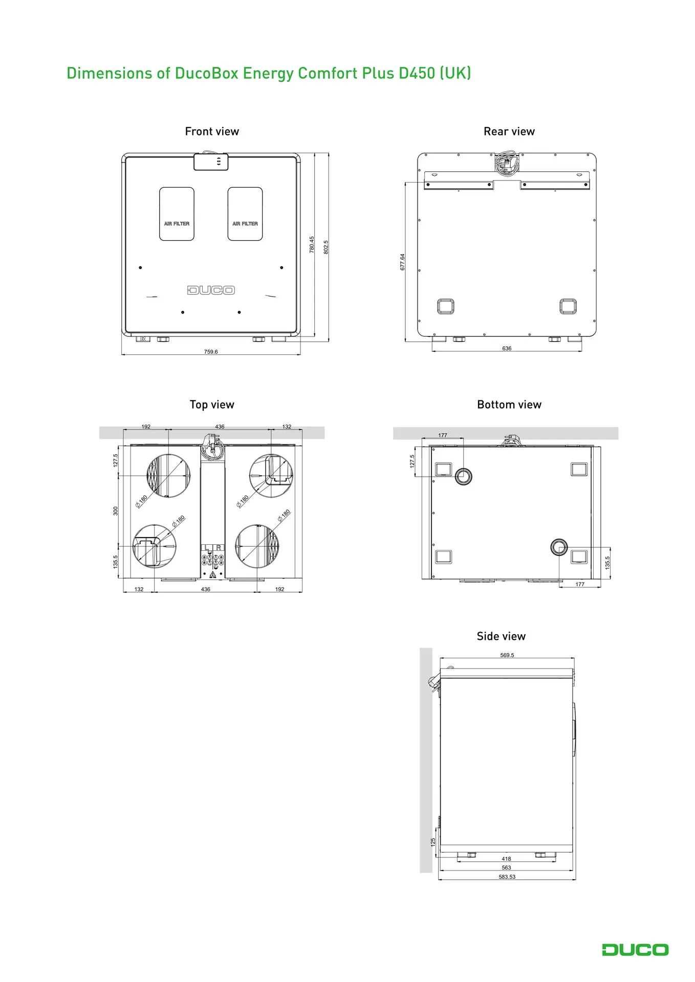 This lightweight unit of 21 kg can easily be installed by 1 person. With its compact dimensions, the DucoBox Energy Comfort is ideal for a small work space!