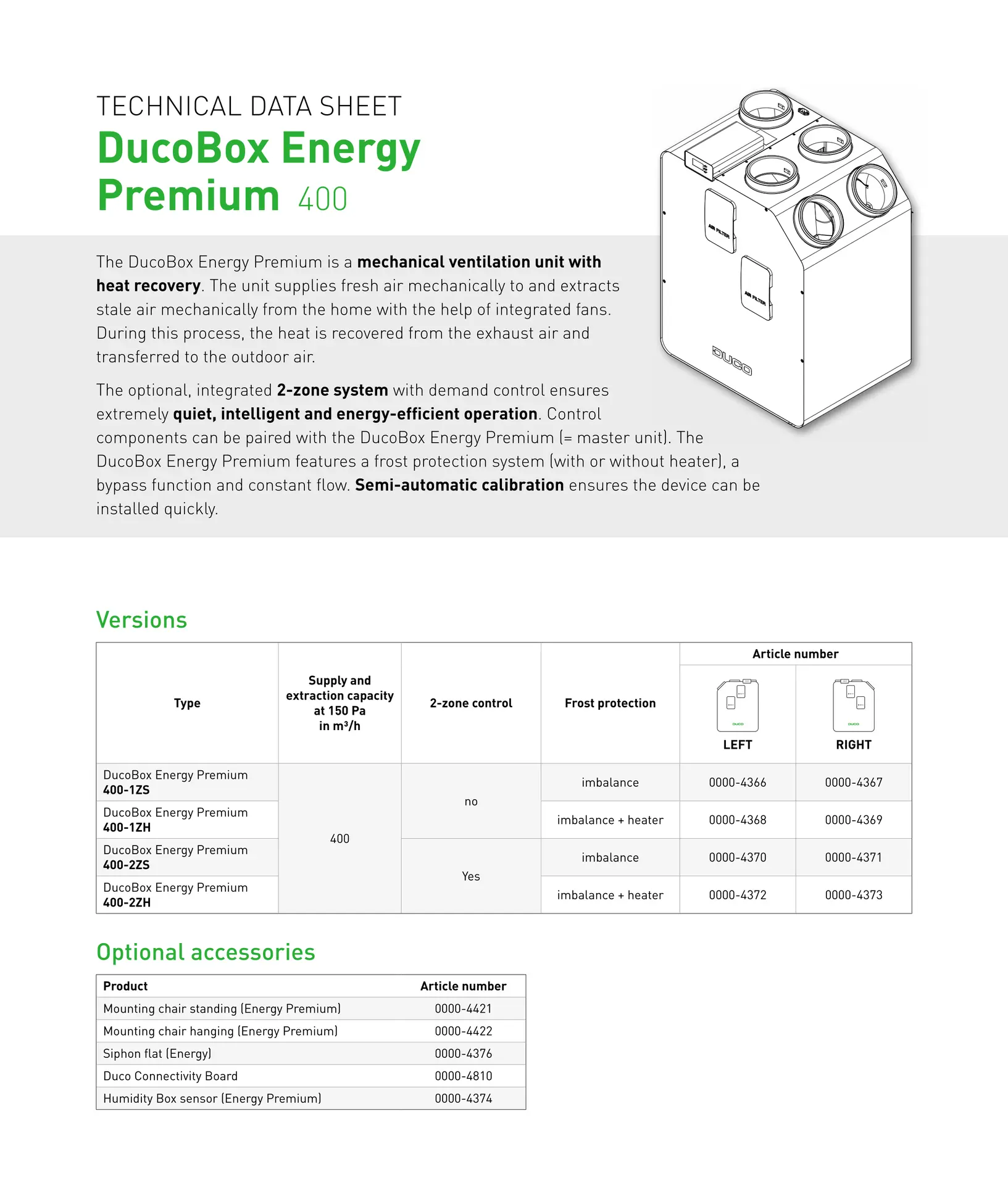 The DucoBox Energy Premium comes in a 1-zone or integrated 2-zone version.