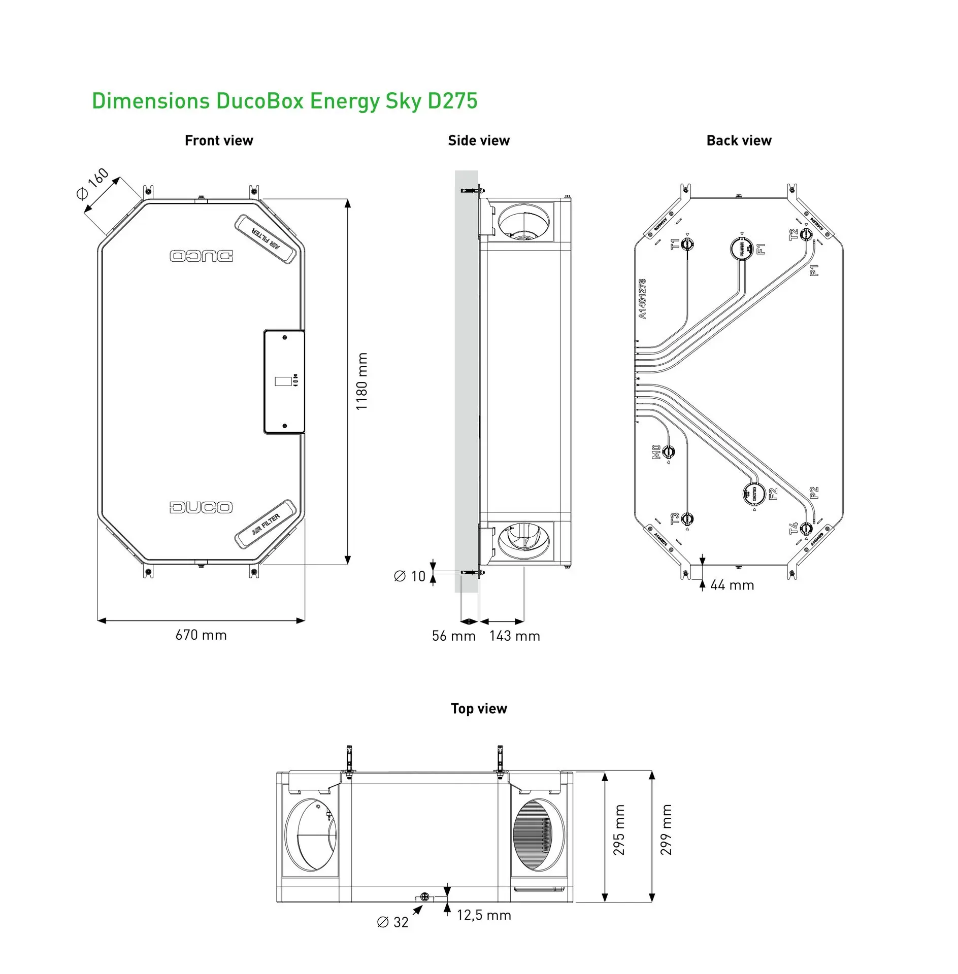 This lightweight unit of 19 kg can easily be installed by 1 person. With its compact dimensions, the DucoBox Energy Sky is ideal for a small work space!