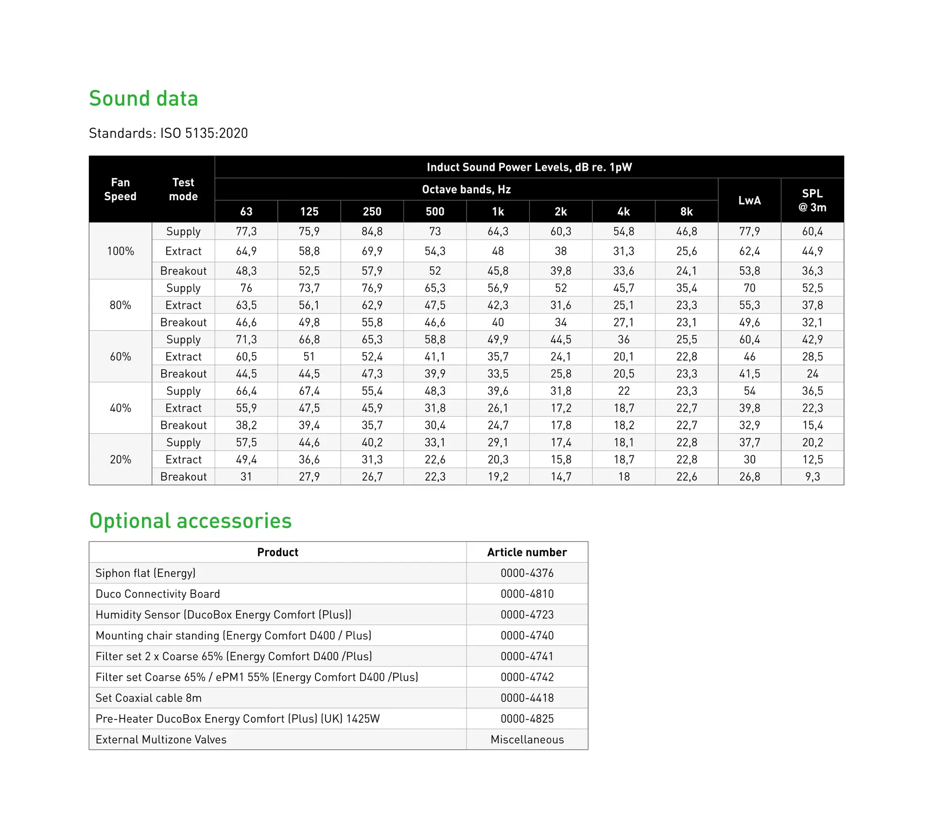 The use of dynamic air filters guarantee a very high efficiency rate. In combination with the possibility to include intelligent on-demand-controlling of the DucoBox Energy Comfort (based on CO2- and/or humidity-sensors), this results in a very energy efficient performance.